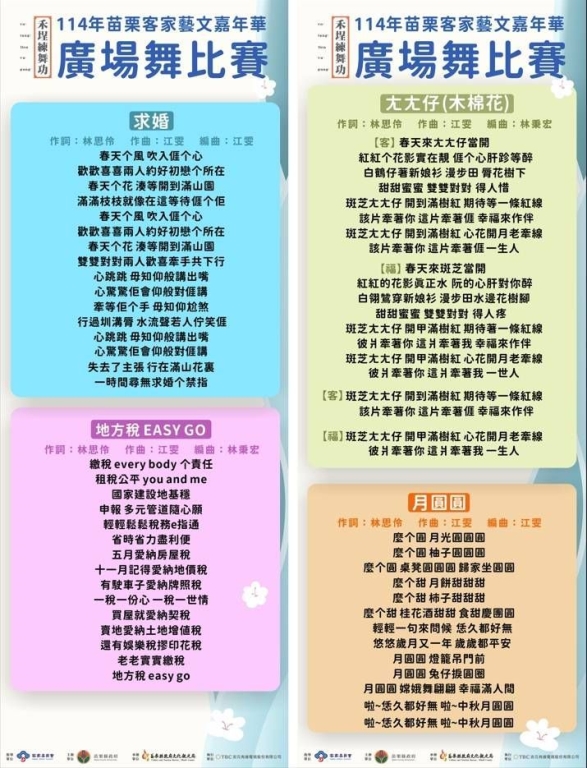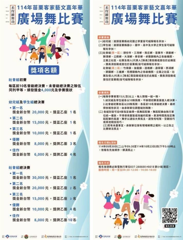 114年苗栗客家藝文嘉年華-廣場舞比賽 今年首度增設社會組初賽 9/30-10/23開放報名額滿為止!