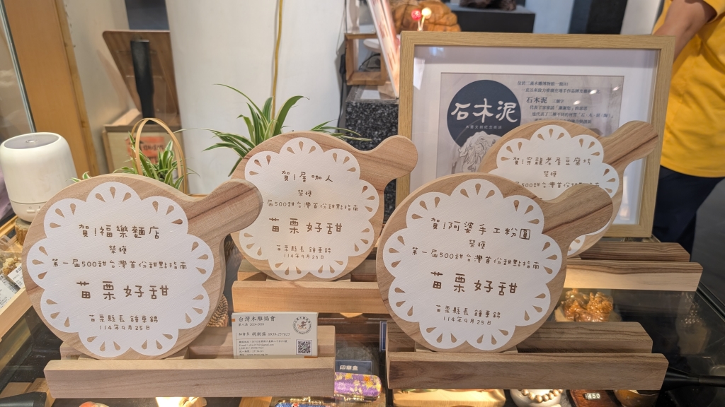 為表達對這些優秀店家的肯定與祝賀,特別由縣長夫人代表縣長,親自走訪各入選店家,致贈特別由三義木雕師傅設計製作之恭賀獎牌,向店家表達最高敬意,也感謝他們長年耕耘在地餐飲,讓苗栗美食走進更多人的心中。