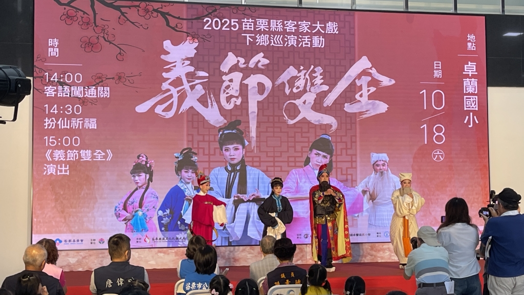 為傳承客家文化,邀請大家共下來看戲,縣府舉辦「2025苗栗縣客家大戲下鄉巡演活動」,邀請客家戲劇界天團-榮興客家採茶劇團在10月18日(星期六)下午2時在卓蘭國小演出《義節雙全》,歡迎民眾走入戲曲世界,體驗傳統藝術之美,以行動支持客家戲曲文化的永續發展。