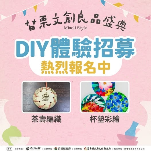 苗栗縣政府為持續培育縣內文化創意產業,啟動「Miaoli style 苗栗文創品牌加值推廣計畫」,以徵選機制挖掘在地優質文創商品,並透過品牌化行銷共同推廣,提升苗栗文創產業的整體能量。歷經評選作業,最終甄選出20組年度「十大文創商品」與「優選作品」,並於114年11月1日(星期六)假尚順育樂世界空橋下廣場舉辦「苗栗文創良品盛典暨形象展覽」,透過典禮與展出,推動文化創意精神,展現苗栗生活工藝之美。